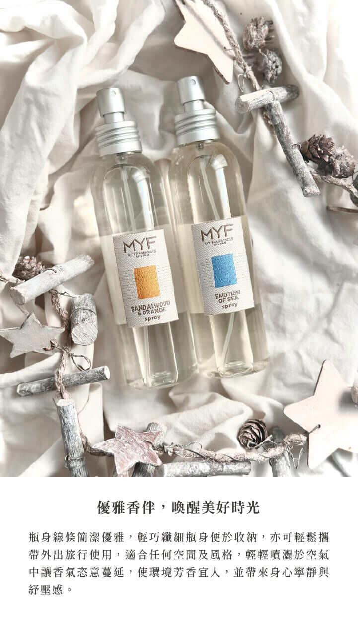 瓶身線條簡潔優雅,輕巧纖細瓶身便於收納,可作擴香補充液,亦可作空間噴霧,輕鬆攜帶外出旅行使用。適合任何空間及風格,輕輕噴灑於空氣中讓香氣恣意蔓延,使環境芳香怡人,並帶來身心寧靜與舒壓感。