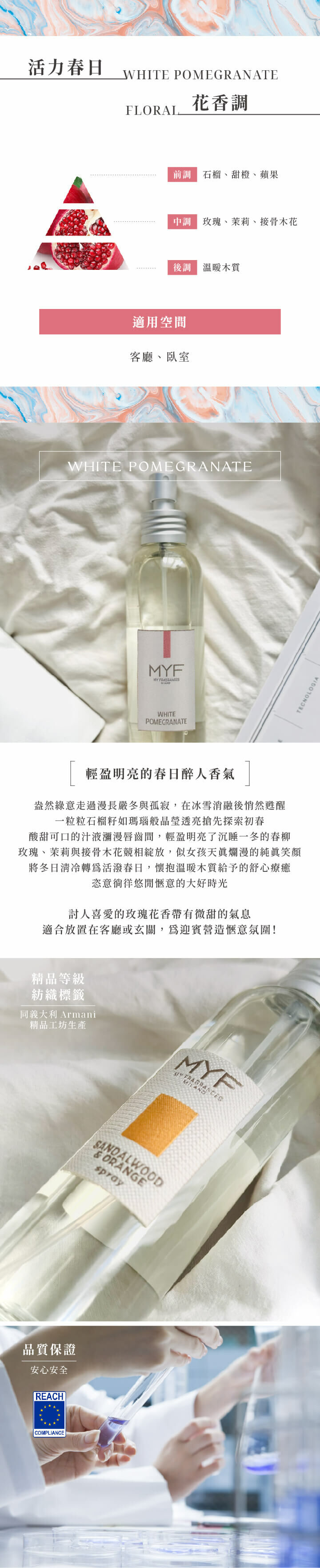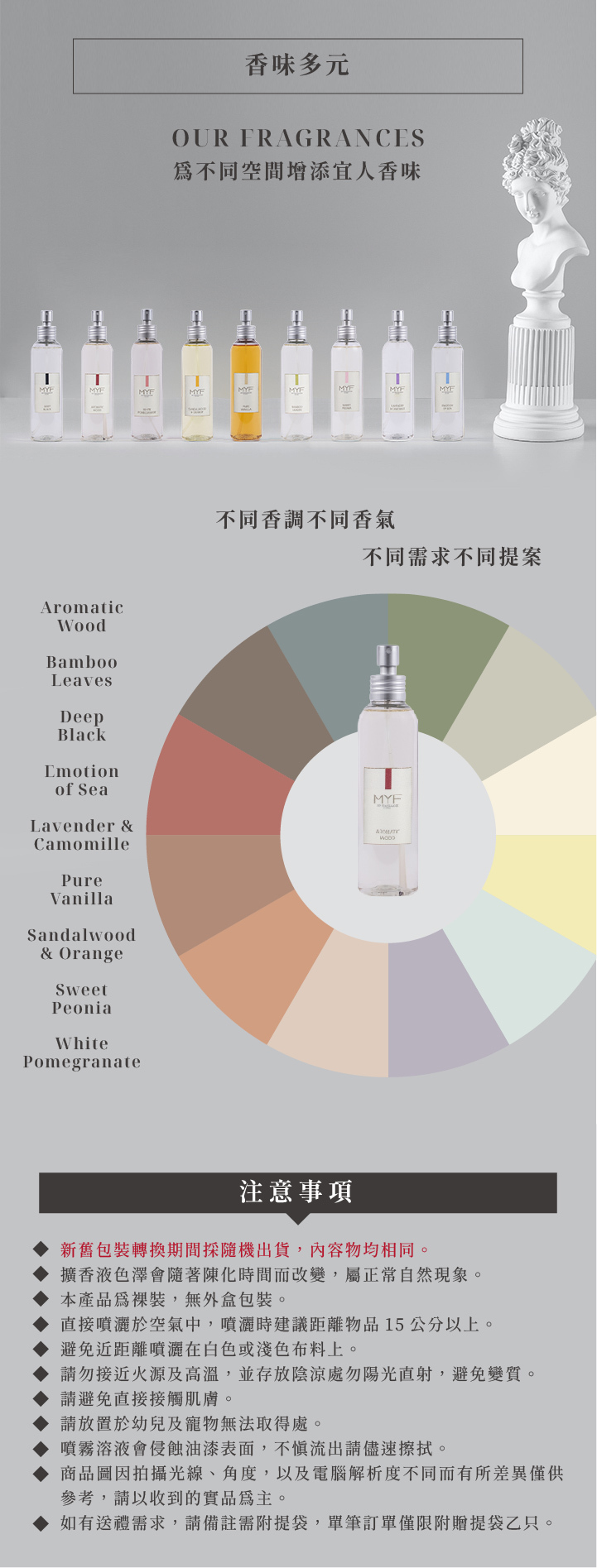 瓶身線條簡潔優雅,輕巧纖細瓶身便於收納,可作擴香補充液,亦可作空間噴霧,輕鬆攜帶外出旅行使用。適合任何空間及風格,輕輕噴灑於空氣中讓香氣恣意蔓延,使環境芳香怡人,並帶來身心寧靜與舒壓感。