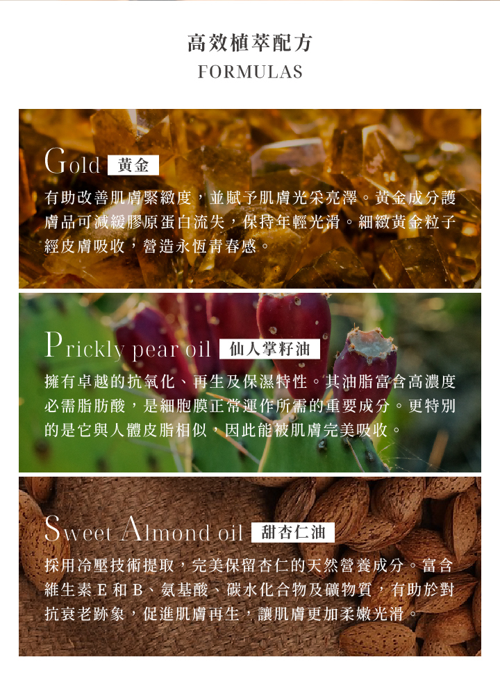 精心調製而成的24K金緻逆時抗老面膜具多種舒緩成分,有機金盞花和洋甘菊提取物能緩解乾燥不適並提供保濕效果。更添加24K黃金成分及拉提複合物,能緊緻毛孔、為肌膚注入青春活力,賦予明亮光感。
