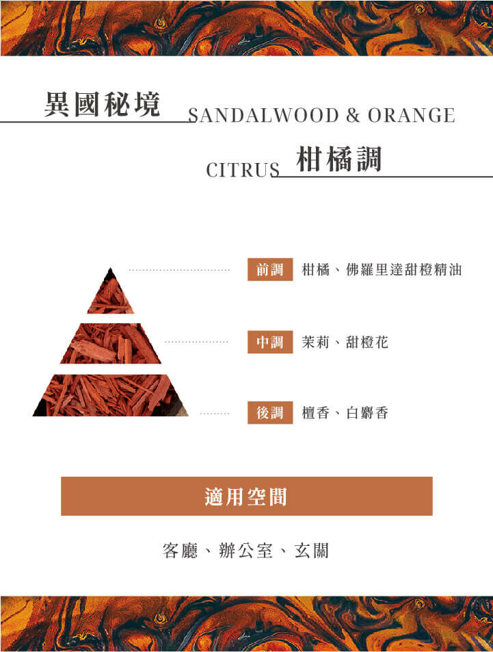 前調:柑橘、佛羅里達甜橙精油