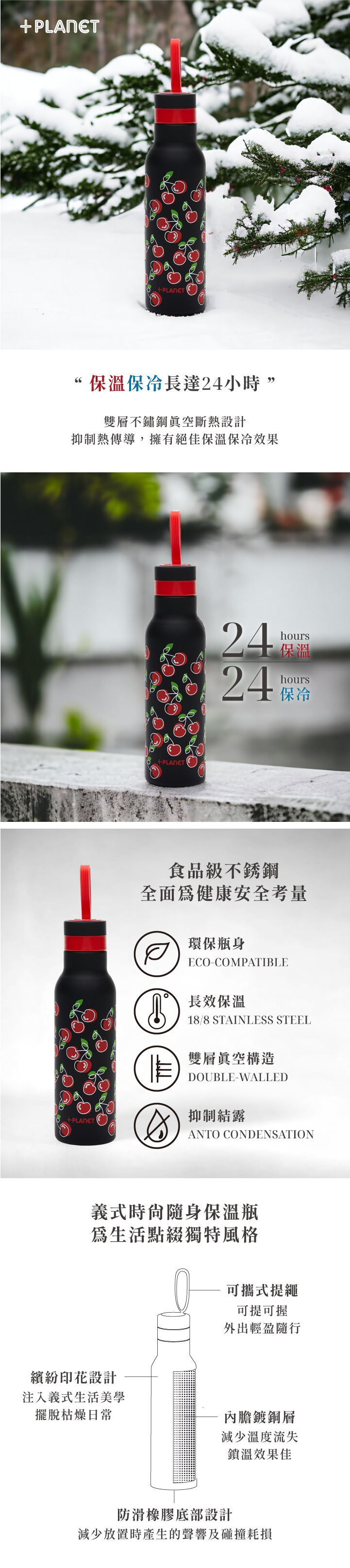 .雙層真空斷熱:保熱保冷效果長達24小時